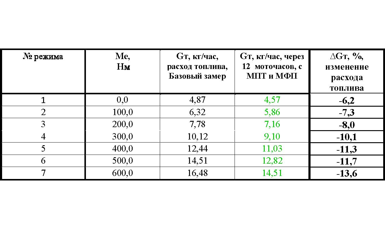 После обработки расход топлива снижается в среднем на 6–22%. У сильно нагруженных и изношенных