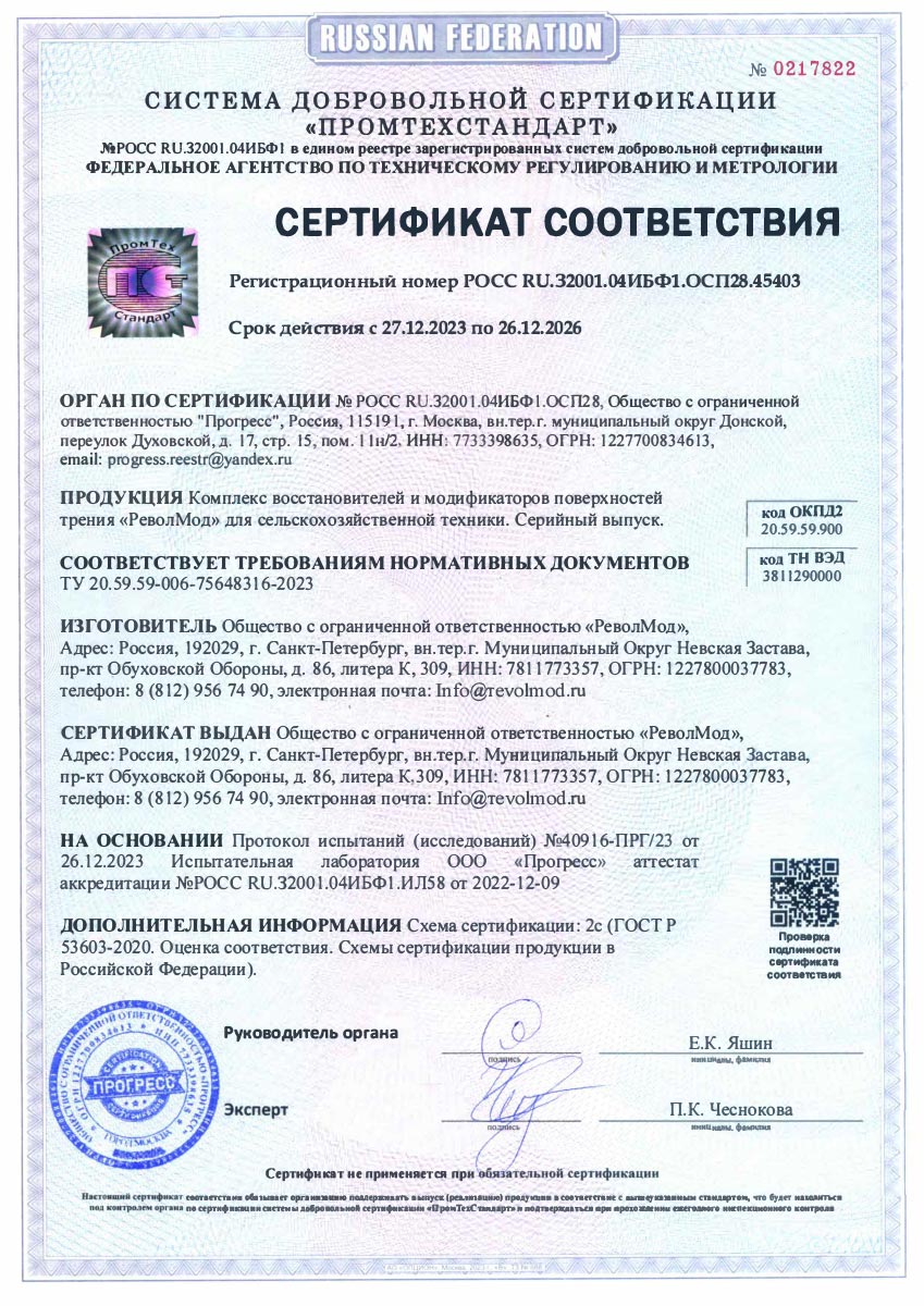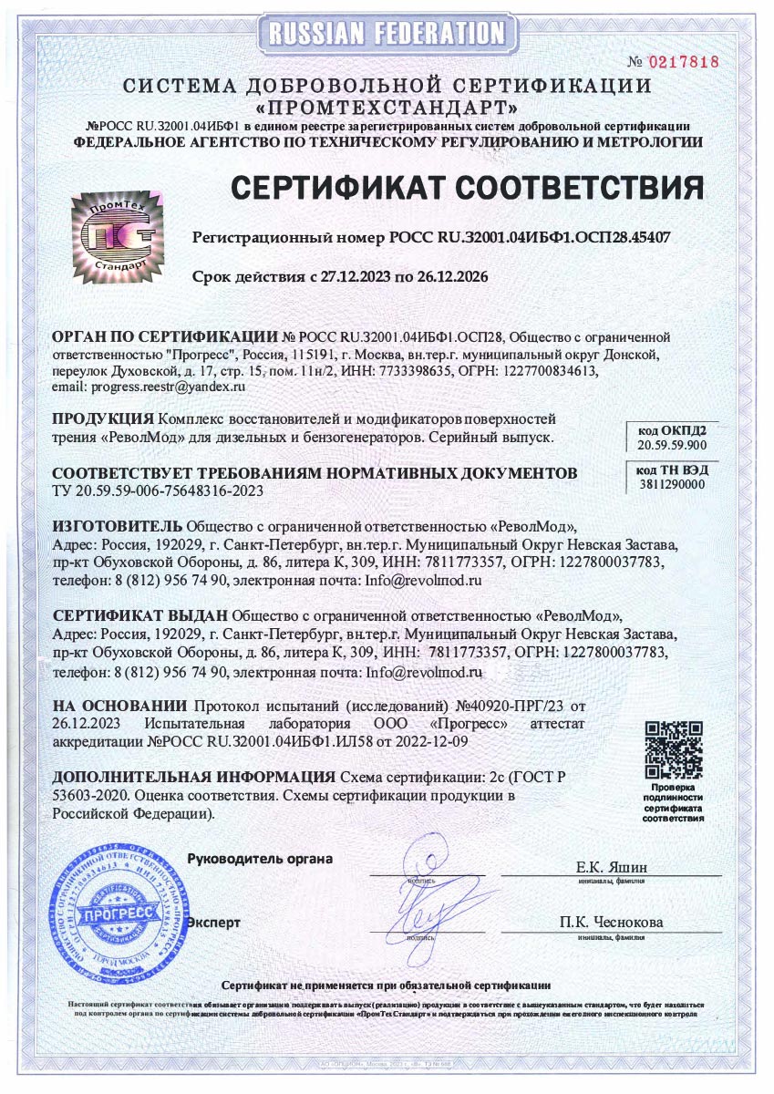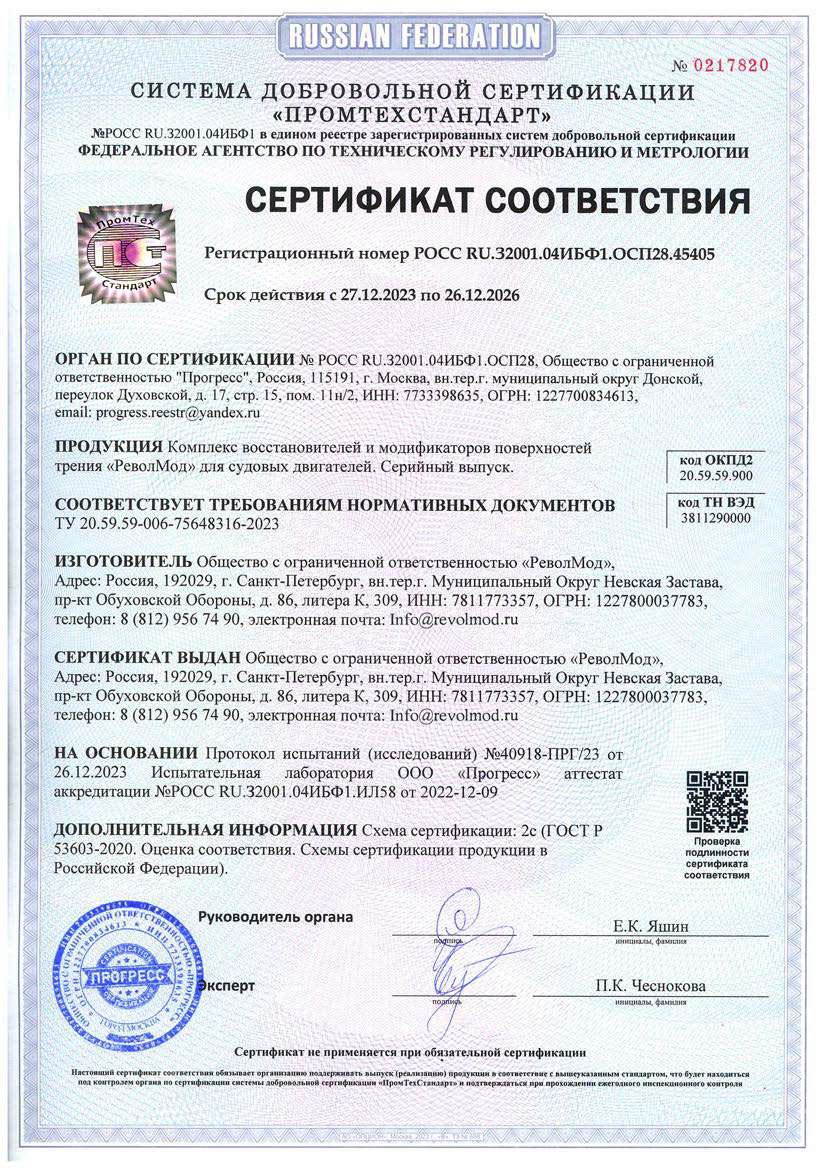 Да. Revolmod работает со стандартными маслами и топливом, не требует изменений в эксплуатации.