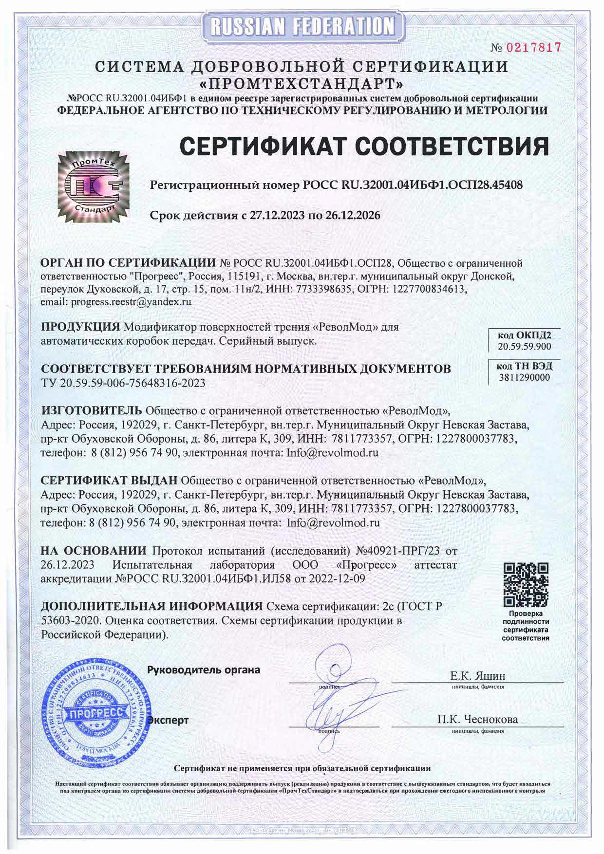 Revolmod снижает трение внутри двигателя и трансмиссии.